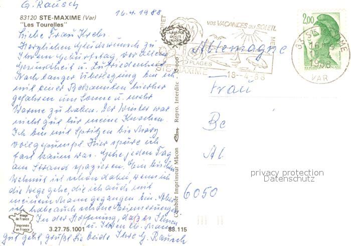 13267848 carte postale Sainte Maxime sur Mer Var Les Tourelles postalisch gelaufen Erhaltung siehe scans [PaolaD17] KatCode: 11170083183115