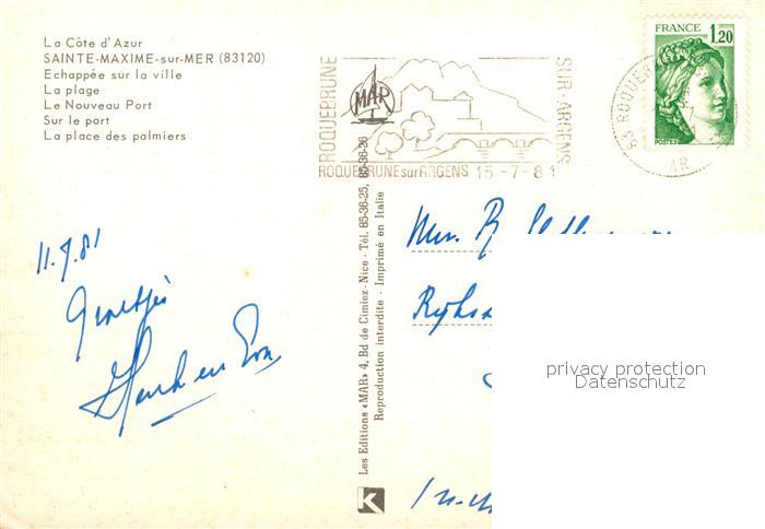13060193 carte postale Sainte Maxime sur Mer Var Panorama Cote d Azur Plage Port Place des palmiers postalisch gelaufen Erhaltung siehe scans [FriedD77] KatCode: 11170083183115