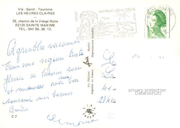 13286050 carte postale Sainte Maxime sur Mer Var Restaurant Les Heures Claires postalisch gelaufen Erhaltung siehe scans [LiesaD40] KatCode: 11170083183115