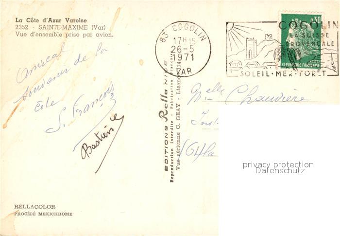 13321519 carte postale Sainte Maxime sur Mer Var Vue Aerienne postalisch gelaufen Erhaltung siehe scans [PaolaD17] KatCode: 11170083183115