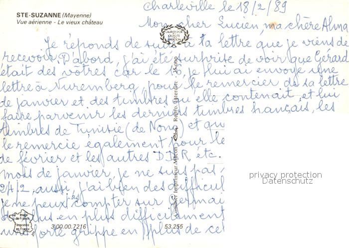 13283893 Sainte-Suzanne Mayenne Vue aerienne Le vieux chateau postalisch nicht gelaufen Erhaltung siehe scans [WerneD78] KatCode: 11170053253255