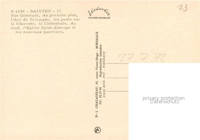 13328682 Saintes Charente-Maritime Fliegeraufnahme postalisch nicht gelaufen Erhaltung siehe scans [KathaD81] KatCode: 11170017417415