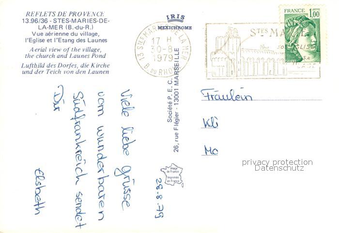 13650188 Saintes-Maries-de-la-Mer Vue aérienne du village Eglise Etang des Launes postalisch gelaufen Erhaltung siehe scans [FriedD77] carte postale Frie Katcode 11170013213096