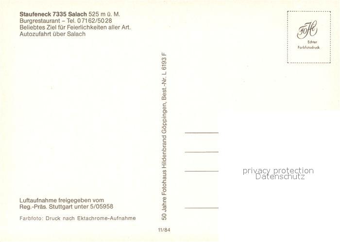 73027437 Salach Fliegeraufnahme Burgrestaurant postalisch nicht gelaufen Erhaltung siehe scans [KathaD81] KatCode: 11110008117042