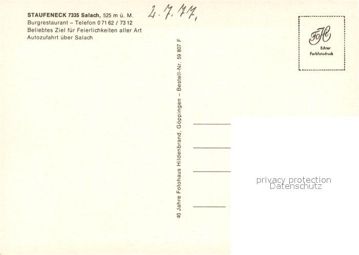 73644334 Salach Staufeneck Burgrestaurant Terrasse Landschaftspanorama postalisch nicht gelaufen Erhaltung siehe scans [FriedD77] KatCode: 11110008117042