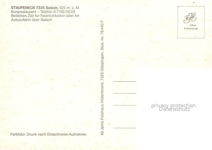 73027436 Salach Staufeneck Burgrestaurant postalisch nicht gelaufen Erhaltung siehe scans [KathaD81] KatCode: 11110008117042