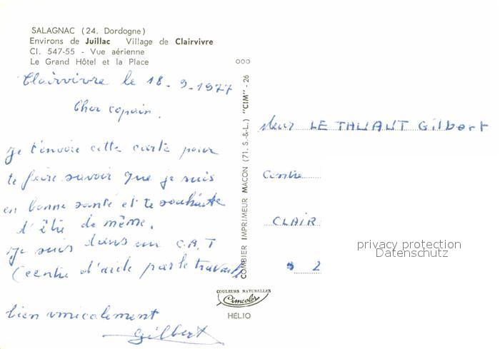 12763644 carte postale Salagnac Fliegeraufnahme Grand Hotel et la Place postalisch gelaufen Erhaltung siehe scans [AndreD76] KatCode: 11170024324515