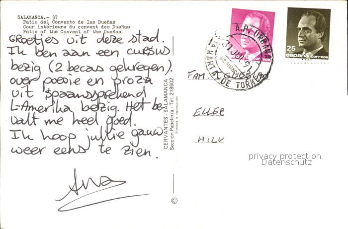 old postcard Salamanca Castilla y Leon Patio del Convento de las Duenas postalisch gelaufen Erhaltung siehe scans