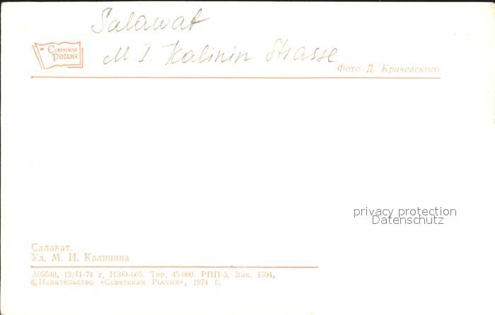 Salawat Kalinin Strasse postalisch nicht gelaufen Erhaltung siehe scans