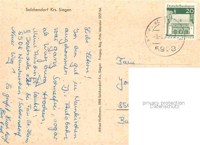 72740717 alte Postkarte Salchendorf Neunkirchen Fliegeraufnahme postalisch gelaufen Erhaltung siehe scans [WerneD78] KatCode: 11110005970036