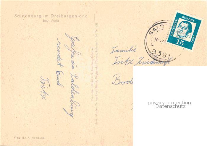 72771494 alte Postkarte Saldenburg Fliegeraufnahme postalisch gelaufen Erhaltung siehe scans [WerneD78] KatCode: 11110009272142