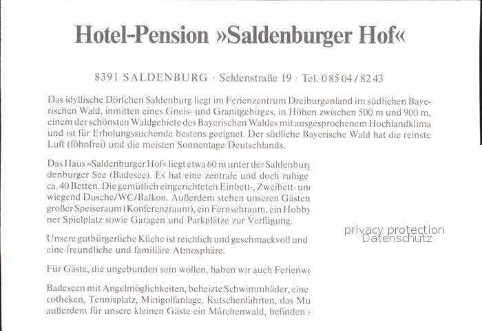 71993282 Saldenburg Hotel Pension Saldenburger Hof postalisch nicht gelaufen KatCode: 11110009272142