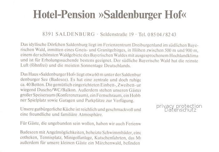 72947089 Saldenburg Hotel Pension Saldenburger Hof postalisch nicht gelaufen Werbekarte (keine Postkarte) Erhaltung siehe scans [LiesaD40] KatCode: 11110009272142
