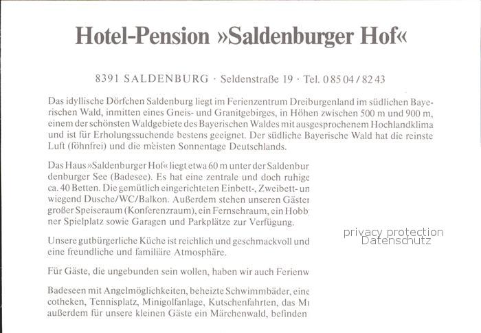 71993317 Saldenburg Hotel Saldenburger Hof postalisch nicht gelaufen Werbekarte (keine Postkarte) Erhaltung siehe scans KatCode: 11110009272142