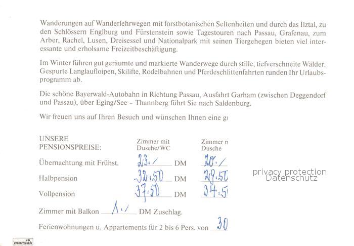 72931491 Saldenburg Saldenburger Hof postalisch nicht gelaufen Werbekarte (keine Postkarte) Erhaltung siehe scans [KathaD81] KatCode: 11110009272142