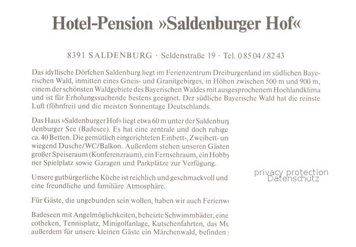 72931171 Saldenburg Saldenburger Hof postalisch nicht gelaufen Werbekarte (keine Postkarte) Erhaltung siehe scans [KathaD81] KatCode: 11110009272142