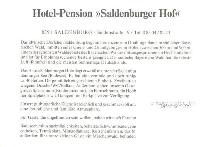 73030595 Saldenburg Saldenburger Hof Hotel Pension postalisch nicht gelaufen Werbekarte (keine Postkarte) Erhaltung siehe scans [KathaD81] KatCode: 11110009272142