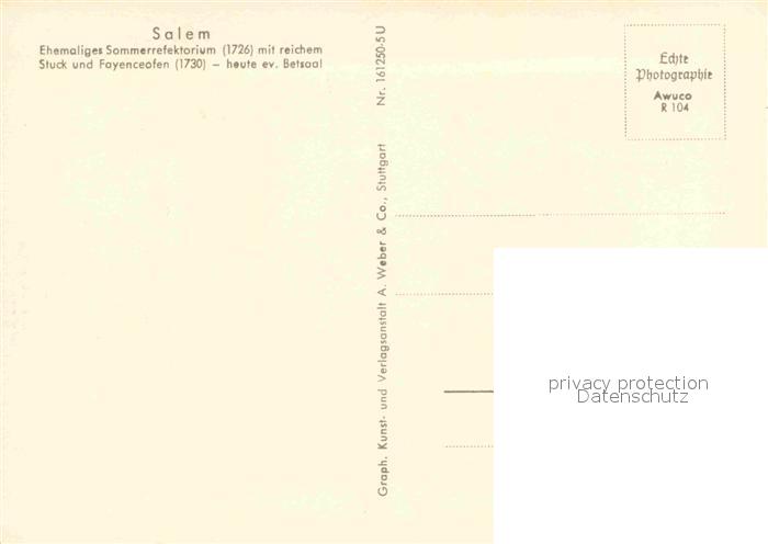 72761964 Salem Baden ehemaliges Sommerrefektorium Stuck und Fayenceofen heute Betsaal postalisch nicht gelaufen Erhaltung siehe scans [LiesaD40] KatCode: 11110008435052
