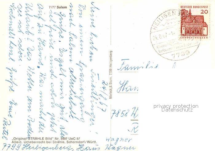 72858381 alte Postkarte Salem Baden Fliegeraufnahme postalisch gelaufen Erhaltung siehe scans [AndreD76] KatCode: 11110008435052