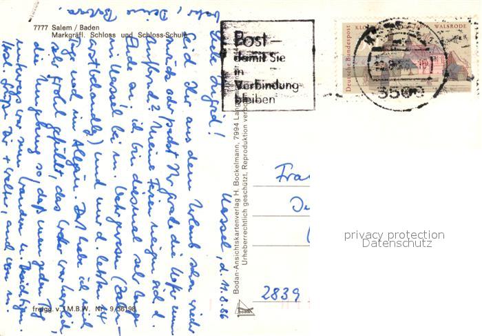 73128972 alte Postkarte Salem Baden Fliegeraufnahme Schloss Schule postalisch gelaufen Erhaltung siehe scans [KathaD81] KatCode: 11110008435052