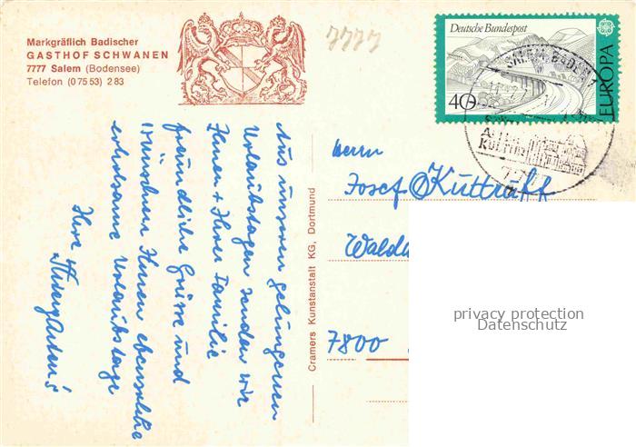 74104135 alte Postkarte Salem Baden Gasthof Schwanen Restaurant postalisch gelaufen Erhaltung siehe scans [FriedD77] KatCode: 11110008435052
