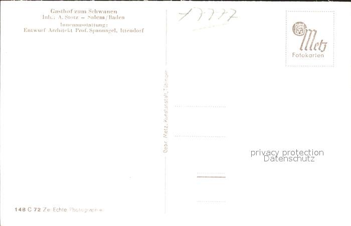41784390 Salem Baden Gasthof Schwannen postalisch nicht gelaufen Erhaltung siehe scans KatCode: 11110008435052