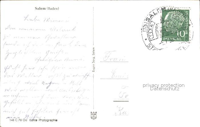 72405224 alte Postkarte Salem Baden Kirche postalisch gelaufen Erhaltung siehe scans KatCode: 11110008435052