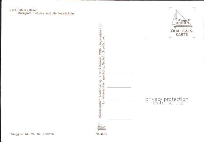 72534112 Salem Baden Markgraefliches Schloss und Schloss Fliegeraufnahme postalisch nicht gelaufen Erhaltung siehe scans [FriedD77 kt118box] KatCode: 11110008435052