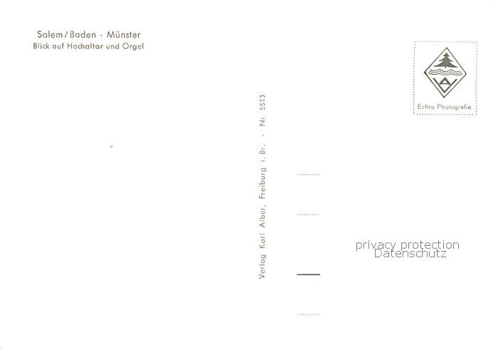 73813004 Salem Baden Muenster Blick auf Hochaltar und Orgel postalisch nicht gelaufen Erhaltung siehe scans [FriedD77] KatCode: 11110008435052