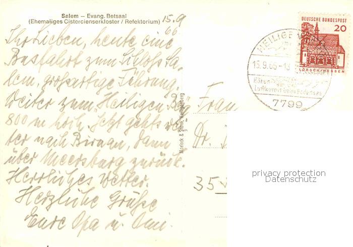 72871235 alte Postkarte Salem Baden Salem Kloster Evangelische Betsaal postalisch gelaufen Erhaltung siehe scans [NatalD47] KatCode: 11110008435052