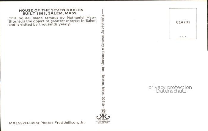 72553730 Salem Massachusetts House of the seven gables postalisch nicht gelaufen Erhaltung siehe scans [AndreD76] KatCode: 14140230000000