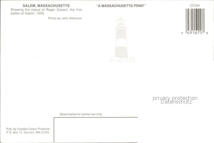 72556303 Salem Massachusetts Statue of Roger Conant postalisch nicht gelaufen Erhaltung siehe scans [AndreD76] KatCode: 14140230000000