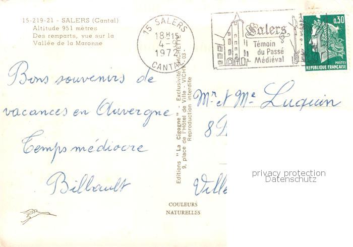 13801963 Salers Des remparts vue sur la Vallee de la Maronne postalisch gelaufen Erhaltung siehe scans [WerneD78] carte postale Wern Katcode 11170015215219