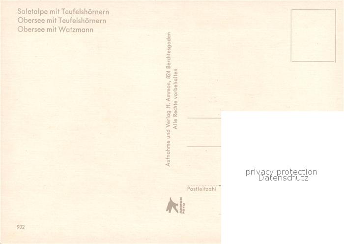 72987884 Saletalpe Berggaststaette Obersee Bergsee Teufelshoerner Watzmann Berchtesgadener Alpen postalisch nicht gelaufen Erhaltung siehe scans [FriedD77] KatCode: 11110009172116