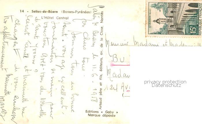 13774289 Salies-de-Bearn 64 L Hotel Central postalisch nicht gelaufen Erhaltung siehe scans [LiesaD40] Lies Katcode 11170064364499