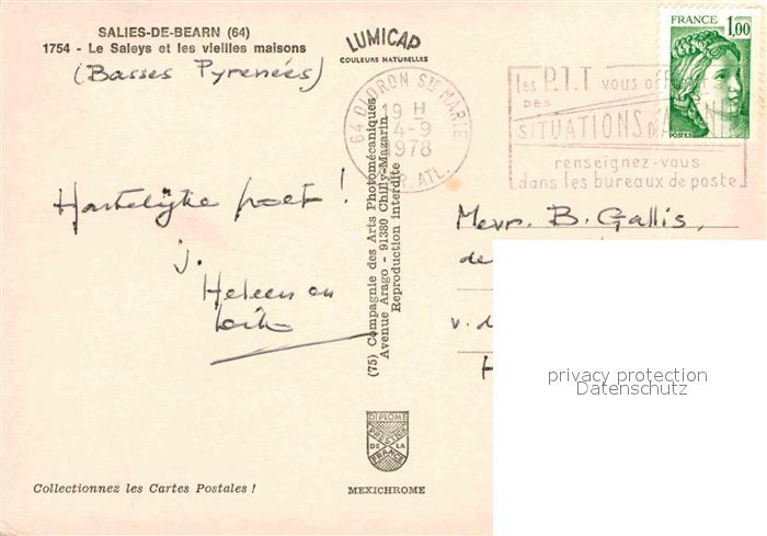 12894018 carte postale Salies-de-Bearn et les vieilles maisons postalisch gelaufen Erhaltung siehe scans [WerneD78] KatCode: 11170064364499