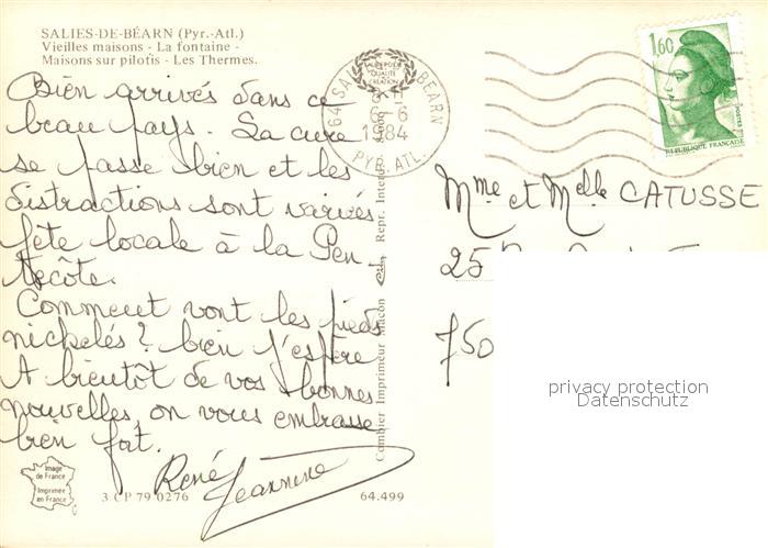 13231635 carte postale Salies-de-Bearn Fontaine Maisons sur pilotis Thermes postalisch gelaufen Erhaltung siehe scans [NatalD47] KatCode: 11170064364499