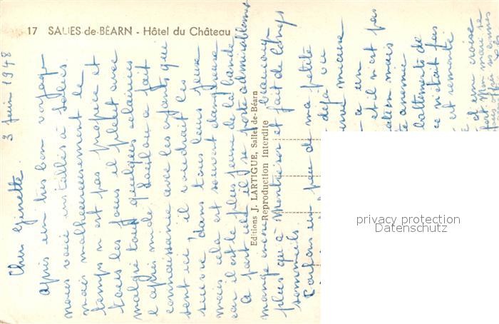 13513744 Salies-de-Bearn Hôtel du Chateau postalisch nicht gelaufen Erhaltung siehe scans [FriedD77] KatCode: 11170064364499