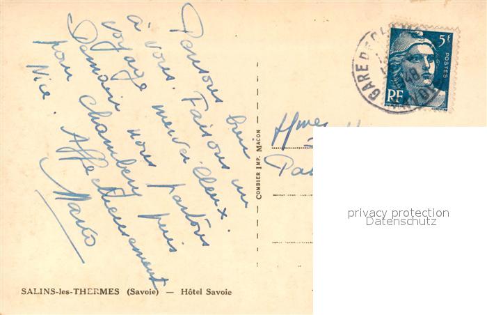13579997 carte postale Salins-les-Thermes Hôtel Savoie postalisch gelaufen Erhaltung siehe scans [FriedD77] KatCode: 11170073173284