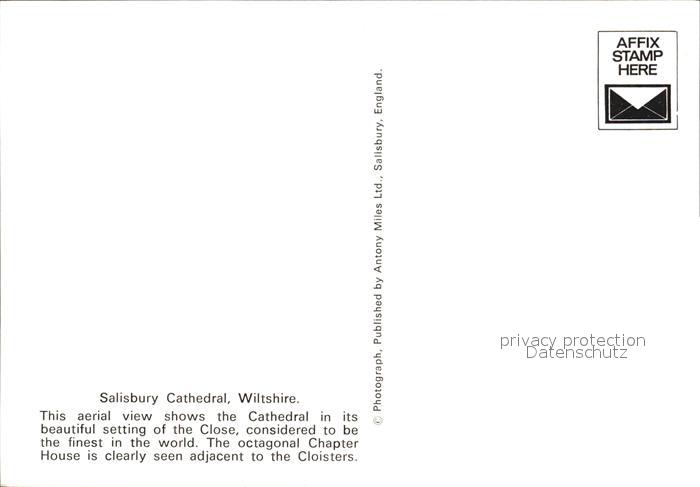 Salisbury Wiltshire Cathedral aerial view postalisch nicht gelaufen Erhaltung siehe scans