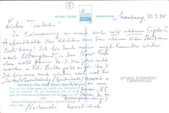 Salisbury Wiltshire High Street Gate postalisch nicht gelaufen Erhaltung siehe scans