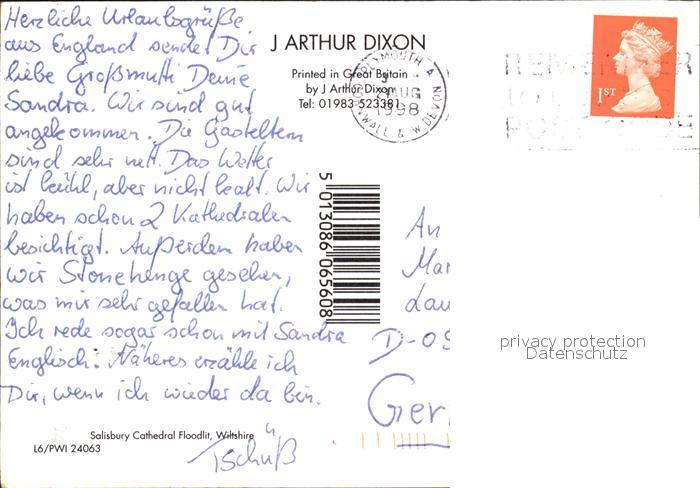 old postcard Salisbury Wiltshire Kathedrale Nacht postalisch gelaufen Erhaltung siehe scans
