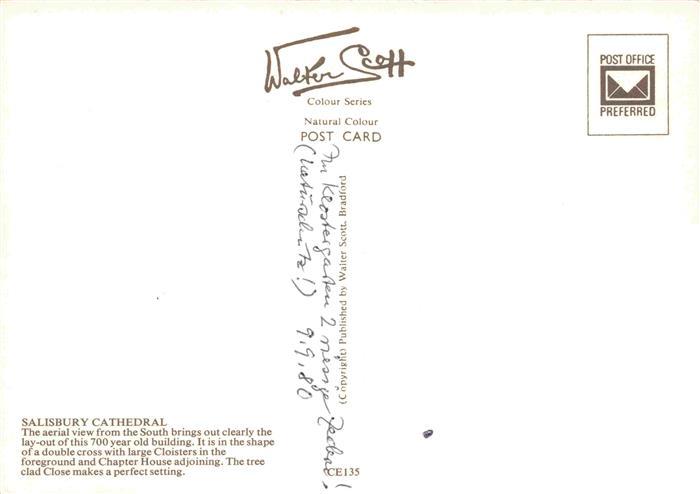 74143758 SALISBURY Wiltshire UK Cathedral postalisch nicht gelaufen Fliegeraufnahme Erhaltung siehe scans [IrynaD87] KatCode: 11570UKK1K15UD