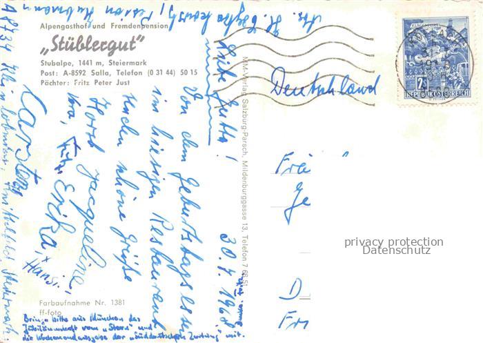74023218 alte Postkarte Salla Alpengasthof Pension Stueblergut Gaststube Kamin Fremdenzimmer postalisch gelaufen Erhaltung siehe scans [FriedD77] KatCode: 11390225061619