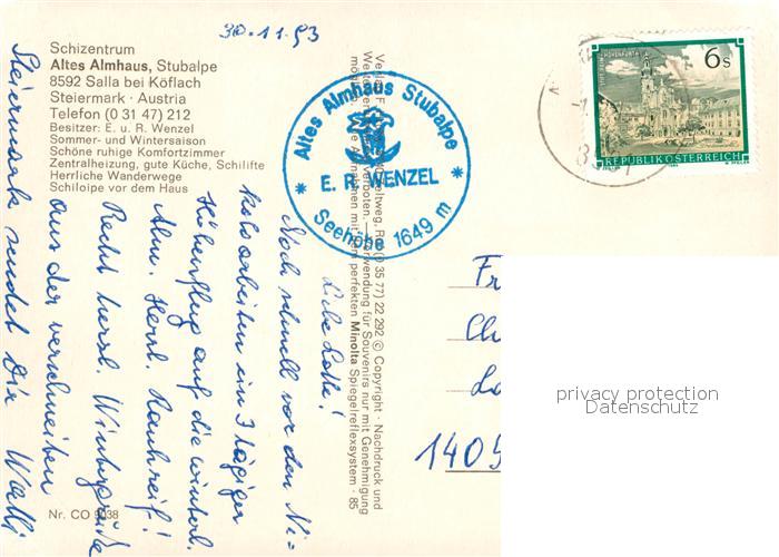 73304456 alte Postkarte Salla Schizentrum Altes Almhaus Stubalpe postalisch gelaufen Erhaltung siehe scans [FriedD77] KatCode: 11390225061619