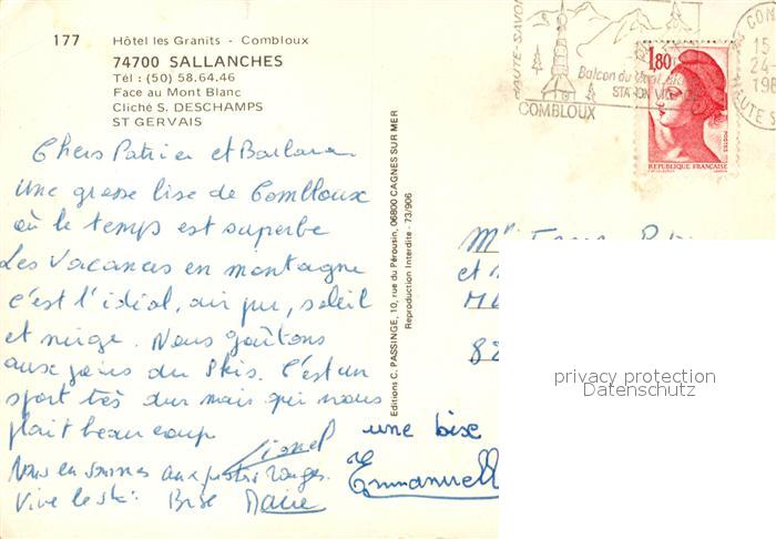 carte postale Sallanches Hotel les Granits Face au Mont Blanc postalisch gelaufen Erhaltung siehe scans [WerneD78]
