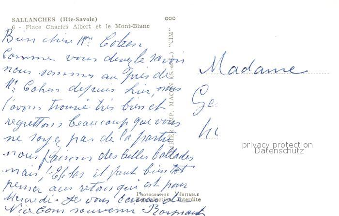 13575252 Sallanches Place Charles Albert et Mont-Blanc postalisch nicht gelaufen Erhaltung siehe scans [LiesaD40] KatCode: 11170074274256