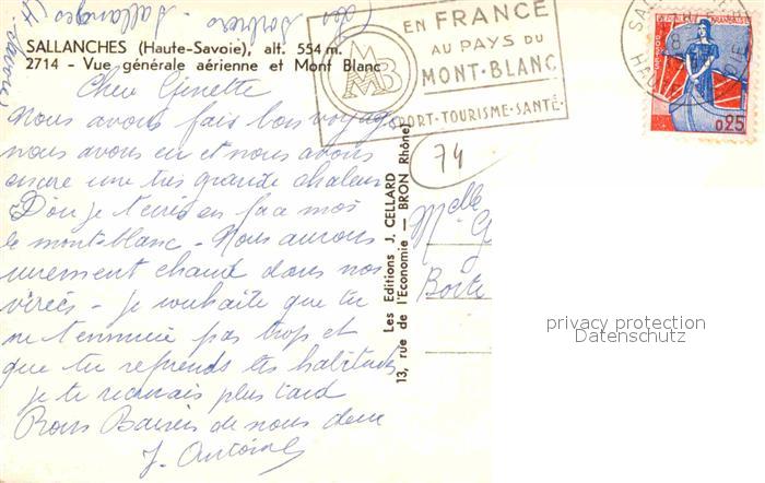 12757158 carte postale Sallanches Vue aerienne et le Mont Blanc postalisch gelaufen Erhaltung siehe scans [FriedD77] KatCode: 11170074274256