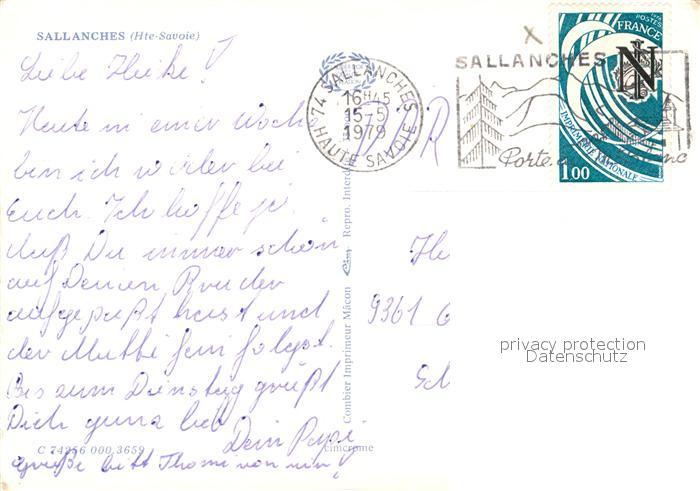 13232377 carte postale Sallanches postalisch gelaufen Erhaltung siehe scans [NatalD47] KatCode: 11170074274256