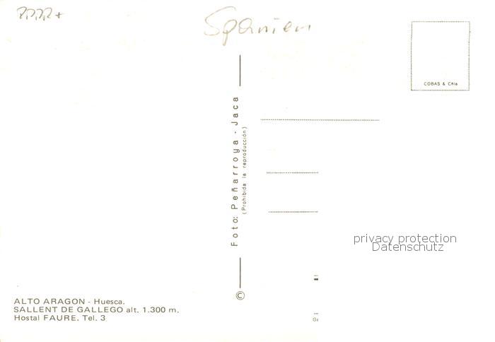 Sallent de Gallego Hostal Faure postalisch nicht gelaufen Erhaltung siehe scans [LiesaD40]